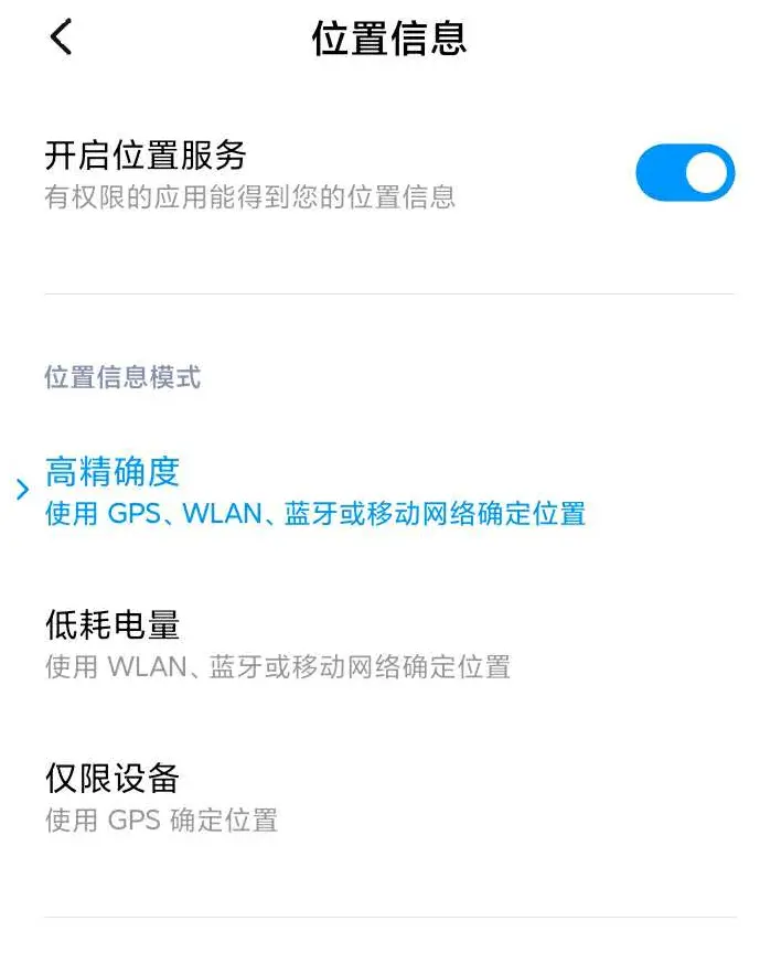 首先将手机定位服务设置,调到下图所示: