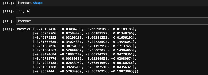 itemMat = data.T.dot(u[:,:k]).dot(sigmaK.I)
