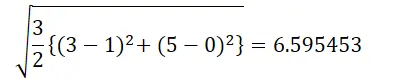 例如,两点(3,NA,5)和(1,0,0)之间的欧几里德距离为: