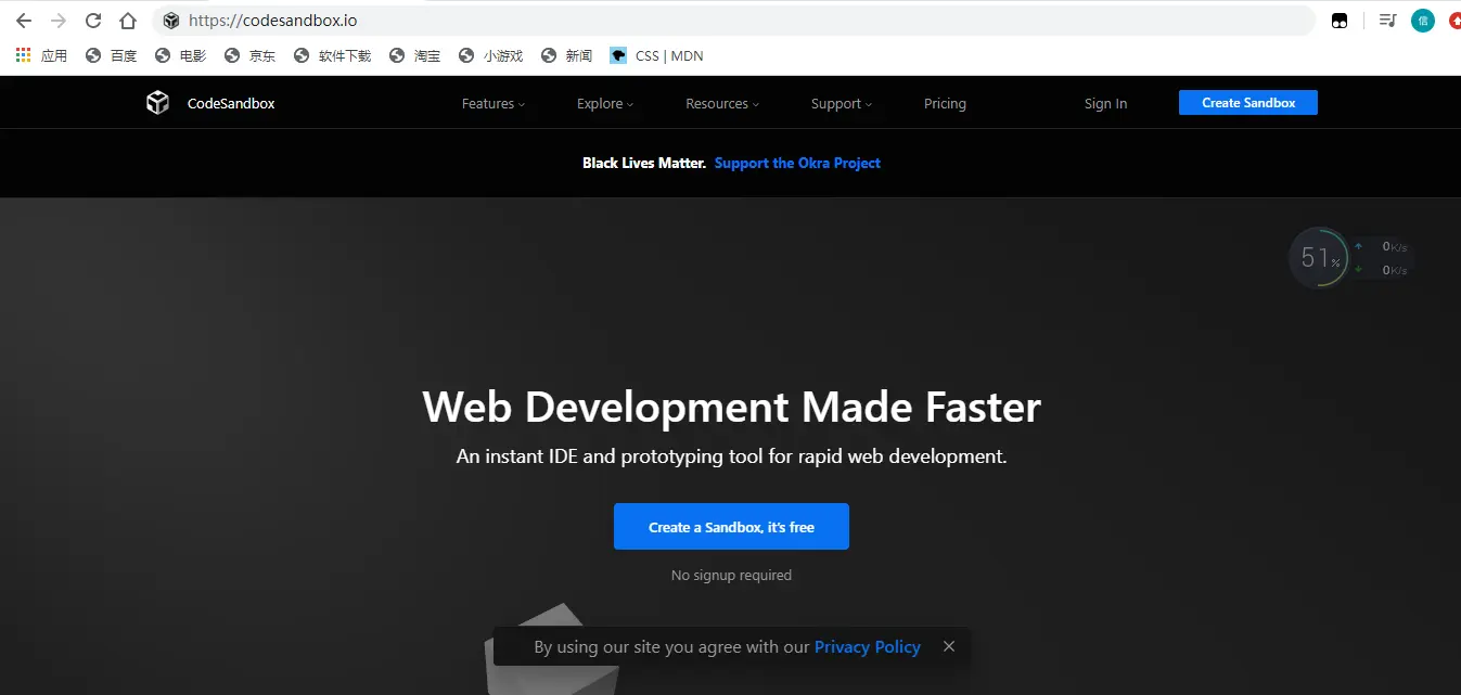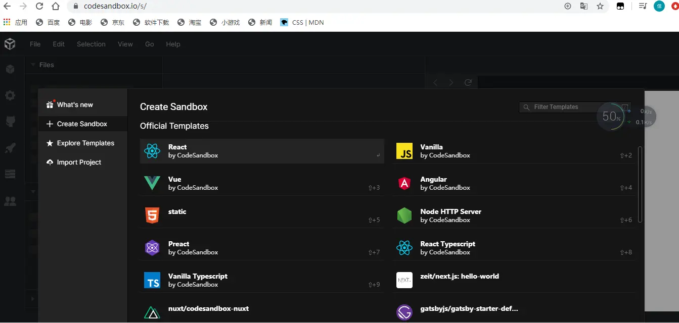 - 首先我们在网页上输入codesandbox.io进入codesandbox网页