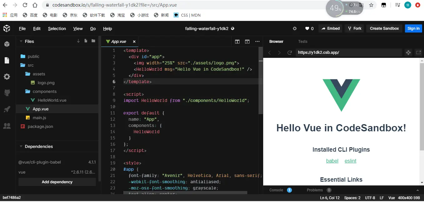 - 然后选择Vue,这样就可以通过codesandbox写Vue代码了。