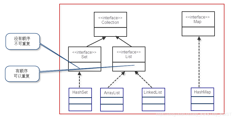 Set接口:Collection的子接口>>无序不可重复 HashSet:Set接口的实现类