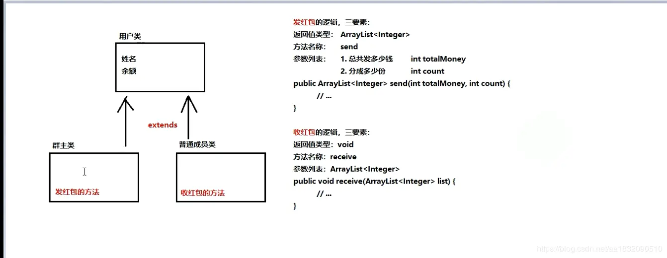 继承的综合案例 群主发普通红包 群主发普通红包。某群有多名成员,群主给成员发普通红包。普通红包的规则: