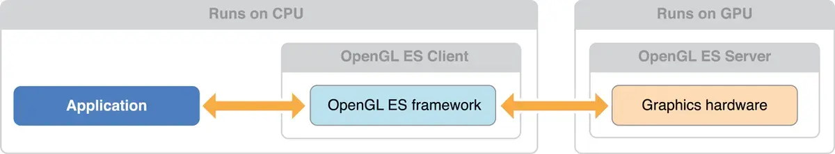 app代码通过OpenGL ES API,会调度OpenGL ES Framework