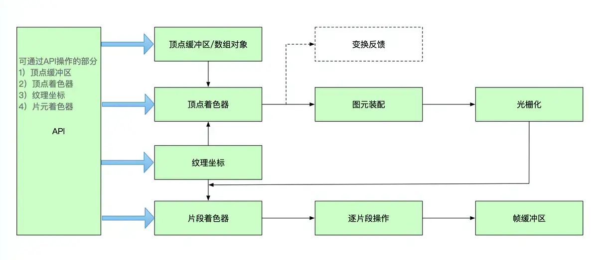 - API:可以通过API操作顶点缓冲区、顶点着色器、纹理坐标、片段着色器