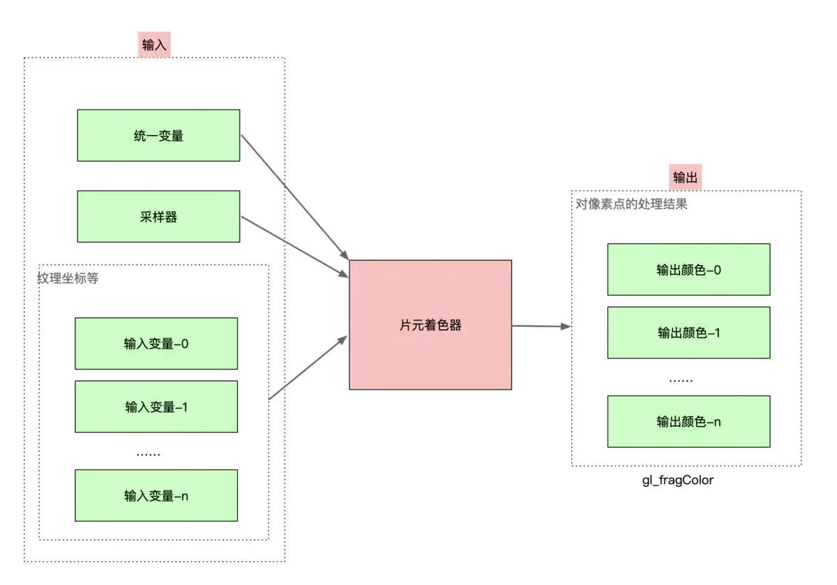 下图展示了片元着色器的输入和输出。
