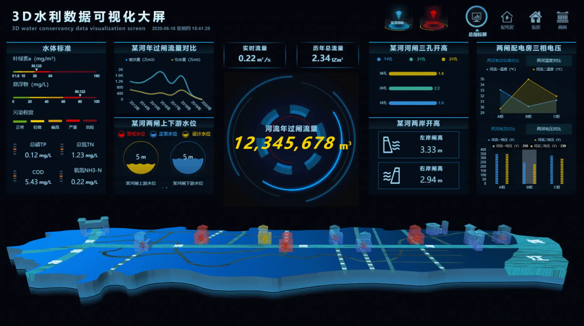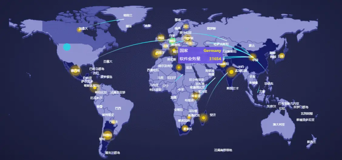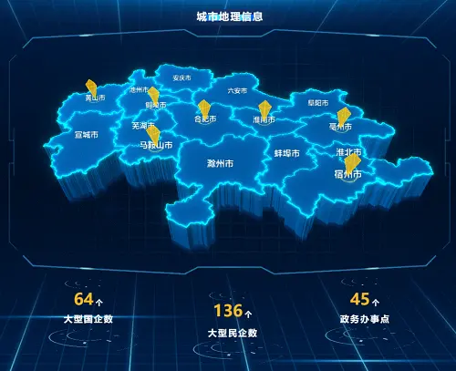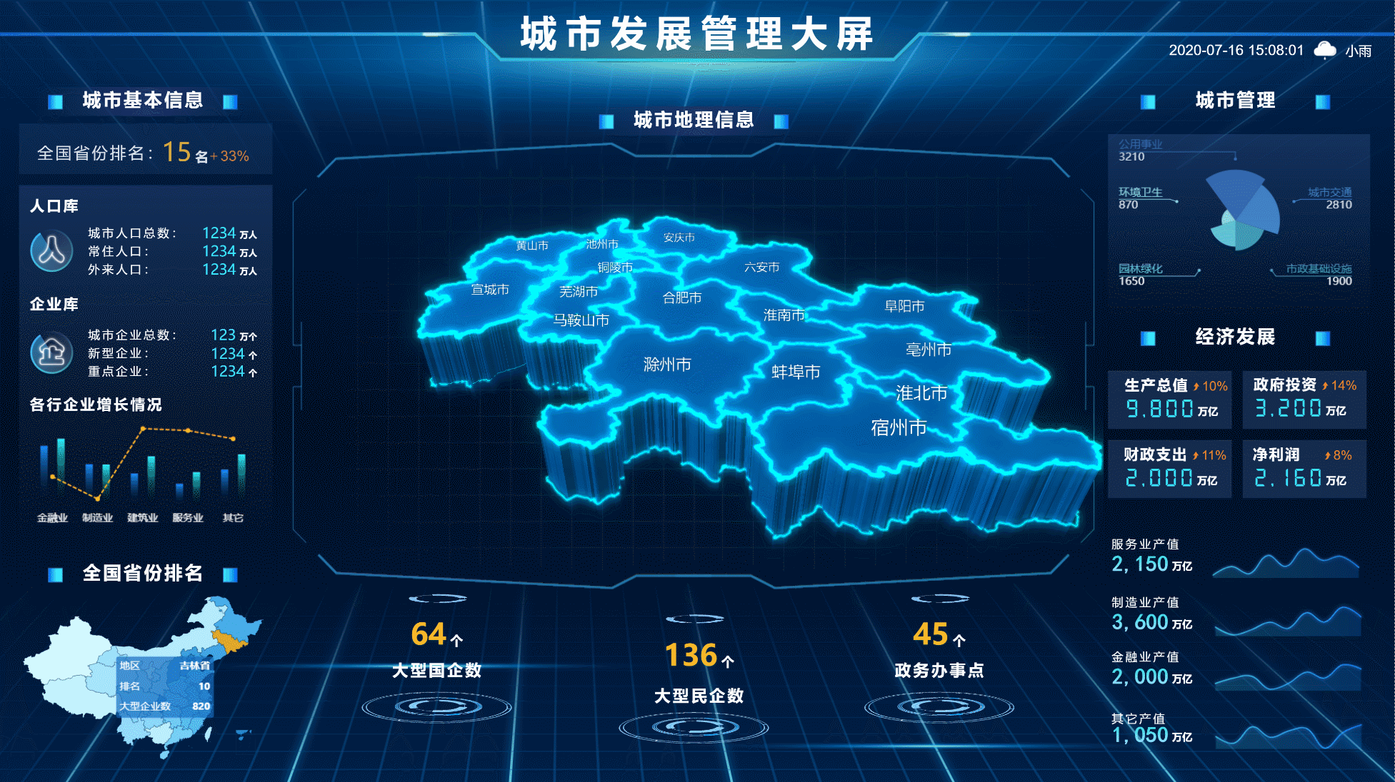 设计师对地图组件和城市进行3D制作,使得大屏更具视觉冲突。