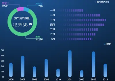 报表块、饼图、柱形图、仪表盘、折线图、条形图和地图这几个组件出现的频率都非常高,可以说是大屏图表组件里面的常规武器了。