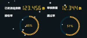 一般大屏都需要有数字总计类的指标,且大多都是核心指标,这样方便领导知道核心指标目前的总体状况。但仅仅一个数字并不能反映出当前指标的完成情况,所以也需要有比率指标,它反映了部分占总体的占比;或者结合数据变化组件,对比突出数据变化。