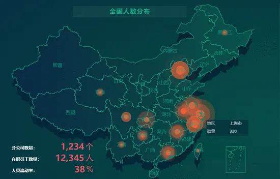 其他的组件,饼图,折线图等等也有千变万化的玩法,大家在以后做大屏的时候可以多尝试变换一个样式,可能会有意想不到的效果。