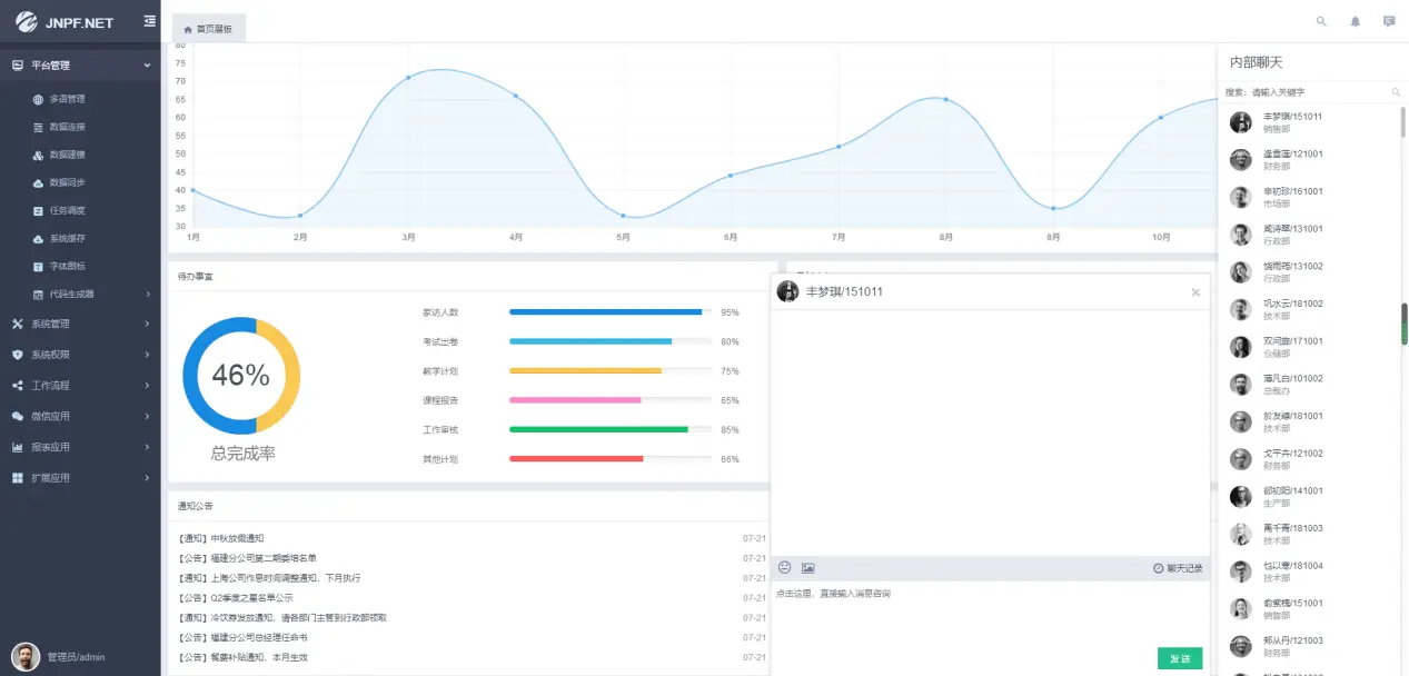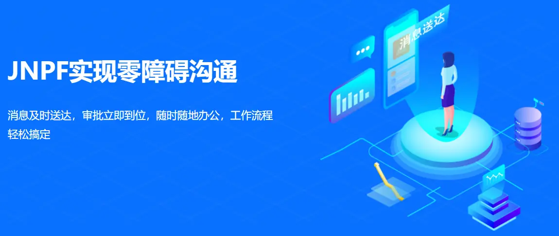JNPF办公软件快速开发框架拥有IM通讯功能,实现了零障碍沟通,让企业即刻拥有消息及时送达单群聊,图片,音视频于一体的办公软件。