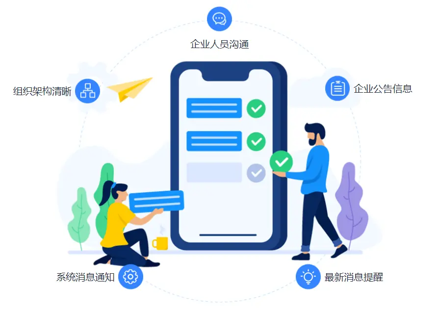 IM应用可随时随地利用碎片化时间、消息及时送达,让部门之间无区域限制的沟通协作