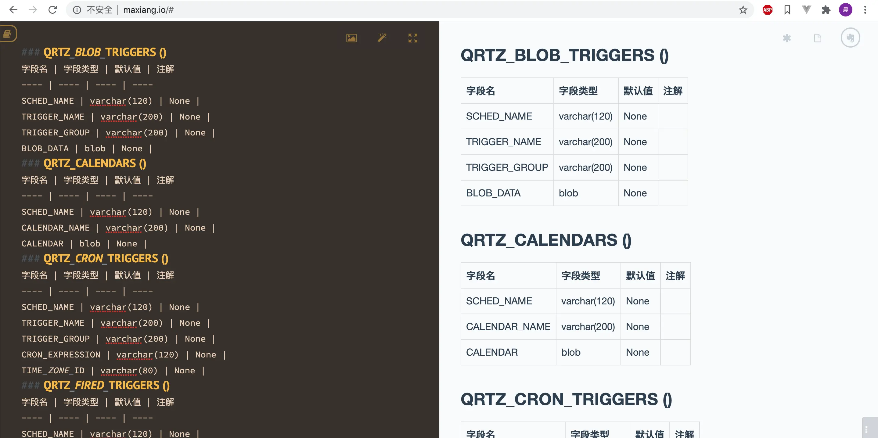 数据库结构文档看起来不是很方便,所以生成一份文档帮助还是挺大的