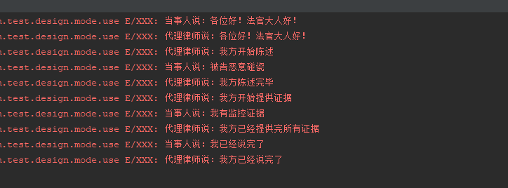 最后进行测试,打印输出如下图所示。可以在代理律师的方法中,我们可以看到,在调用当事人类中的方法时,可以在之前或者之后扩展自己的逻辑。