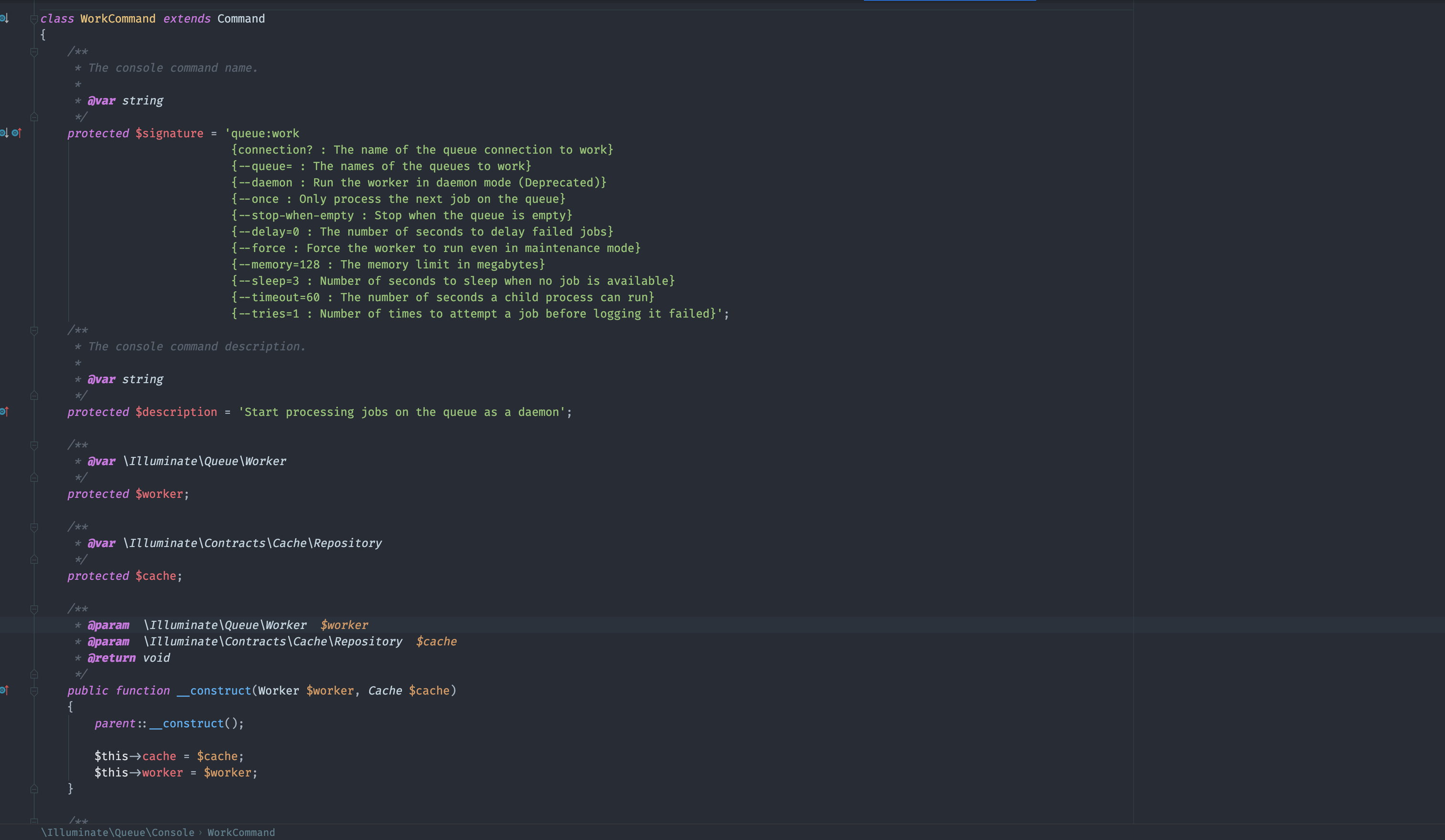 use Illuminate\Queue\Console\WorkCommand as BaseWorkCommand;