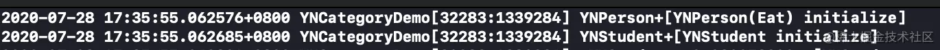 现在为YNPreson、YNStudent 、YNStudent+Eat 添加initialize方法。执行结果如下: