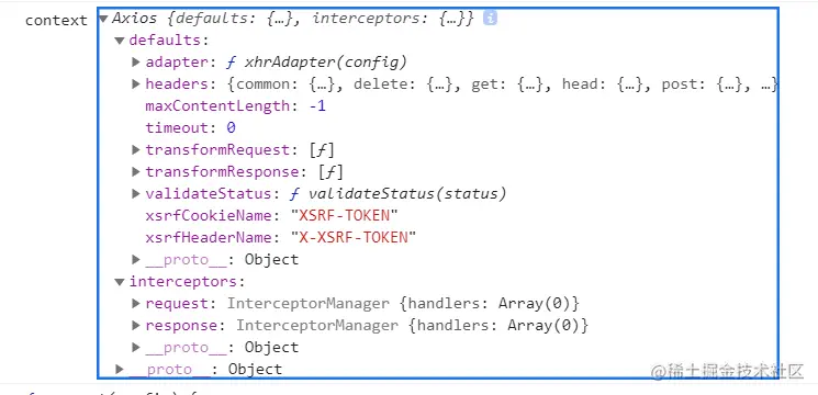 关于这个mergeConfig() 方法具体逻辑就不看了,它会将我们传入的config及 默认的一些属性一并处理返回作为实例化axios的config参数,