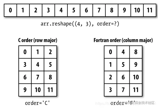 order,数组填充顺序,行优先(C)或者列优先(F),默认为 C