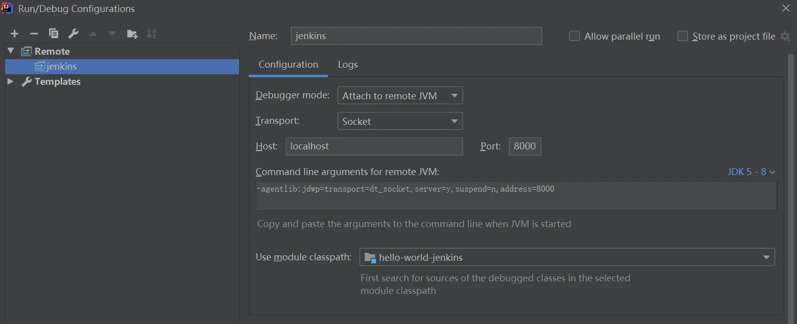 运行mvnDebug hpi:run 命令,在idea中将Remote添加到工程的配置中