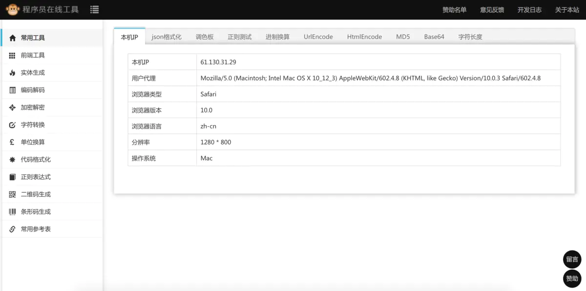 网址为:www.ofmonkey.com 早知道早方便,功能很强大,包括了程序员除编写代码外的几乎所有功能,什么单位换算,Json解析,编码解码,正则表达式,二维码,加密解密等等,用后就离不开的工具。