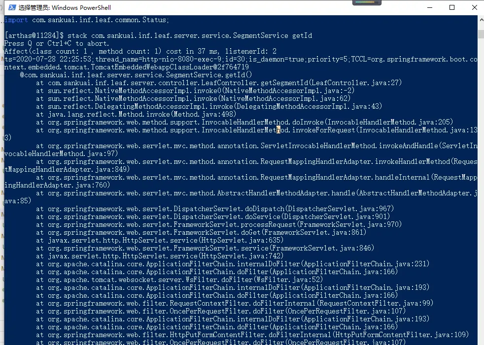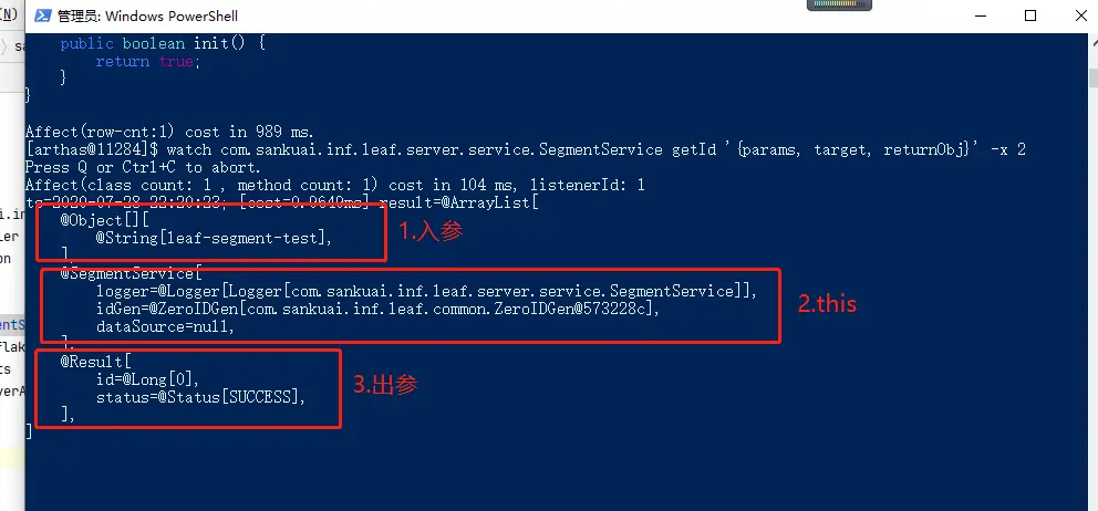 watch com.sankuai.inf.leaf.server.service.SegmentService getId '{params, target, returnObj}' -x 2