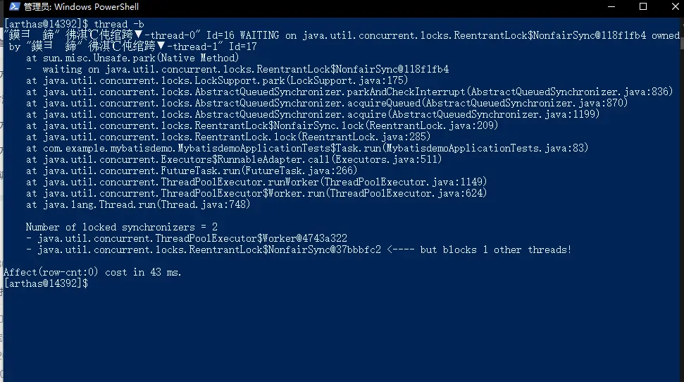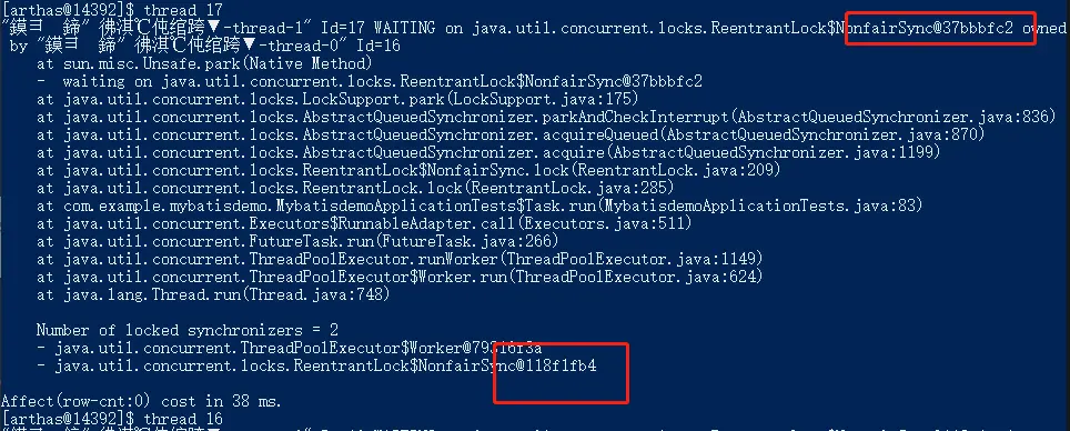 可以看出当前线程正在等待ReentrantLock$NonfairSync@118f1fb4,而持有这个对象的线程又在等待当前线程释放,从而形成死锁!