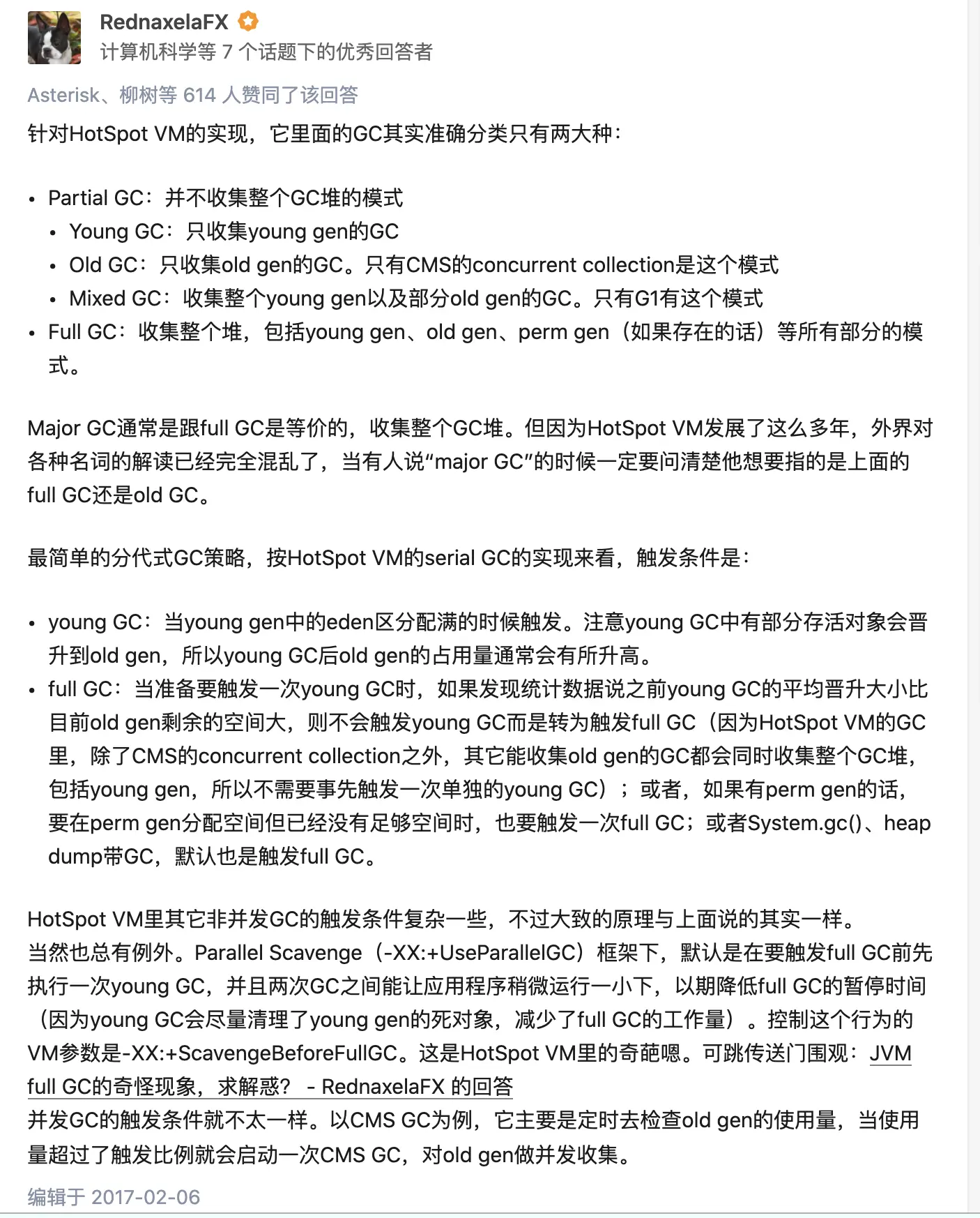 “老年代 GC(Major GC/Full GC),指发生在老年代的 GC……”