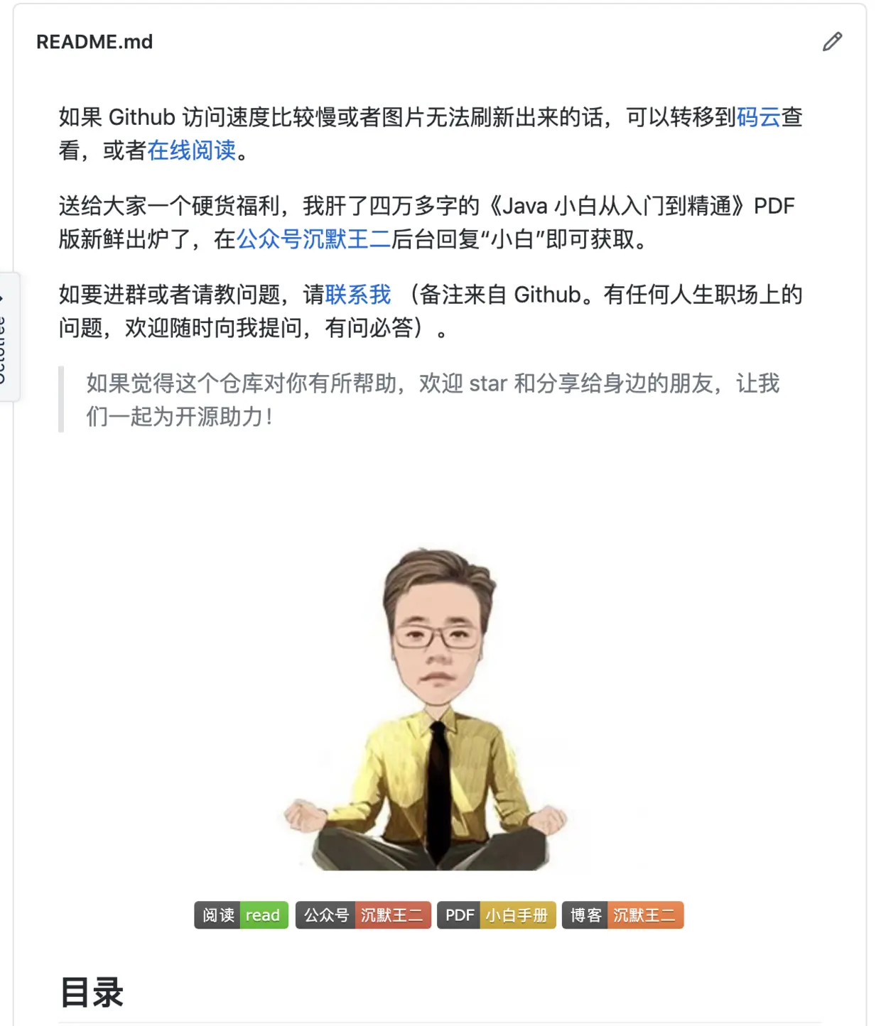 对于大部分中文的仓库来说,readme 部分是最详细的。区分一个仓库优质不优质,就看 readme 部分写得够不够认真。