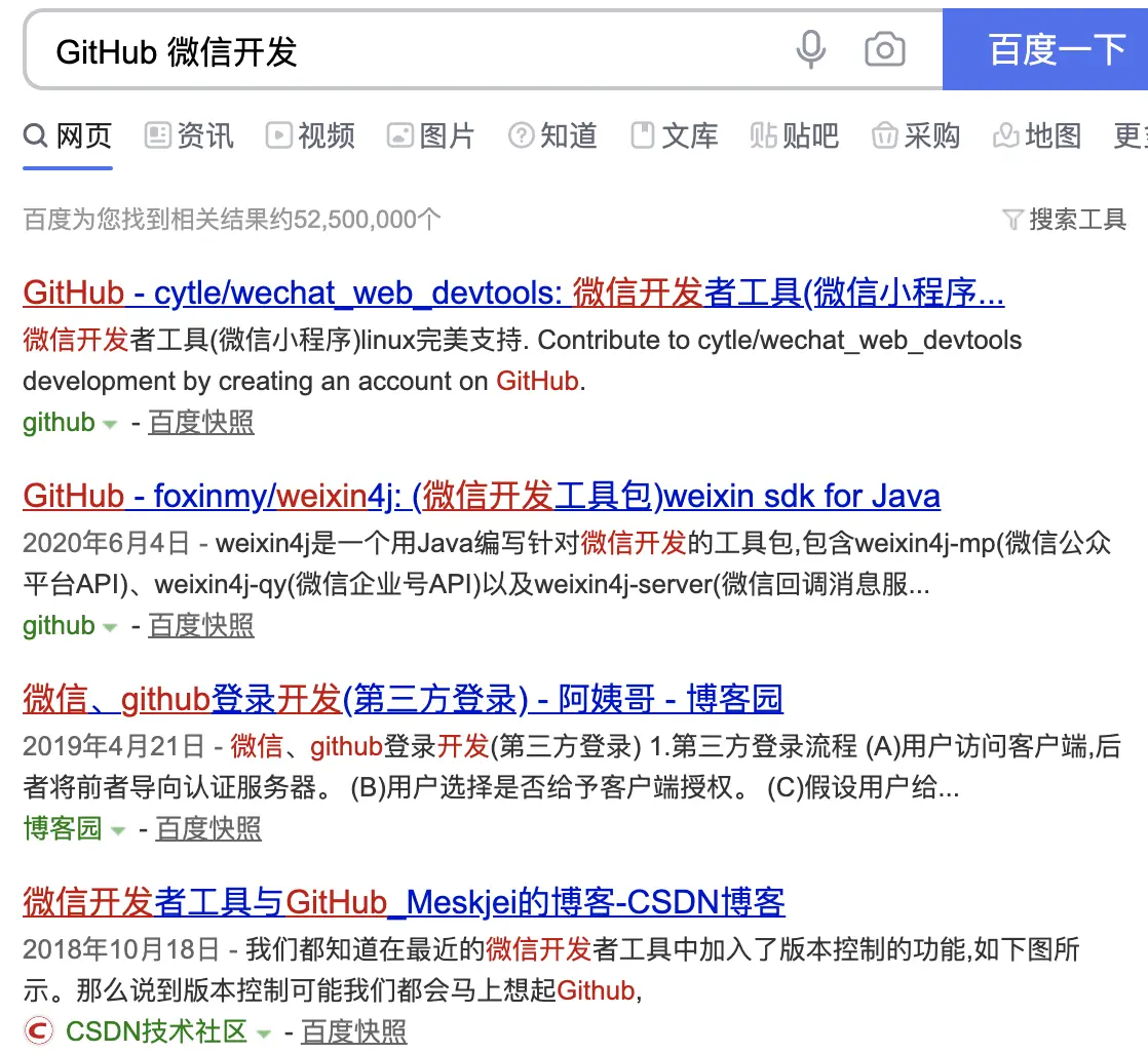 还拿之前“微信支付”这个关键字,百度搜到的结果如下所示: