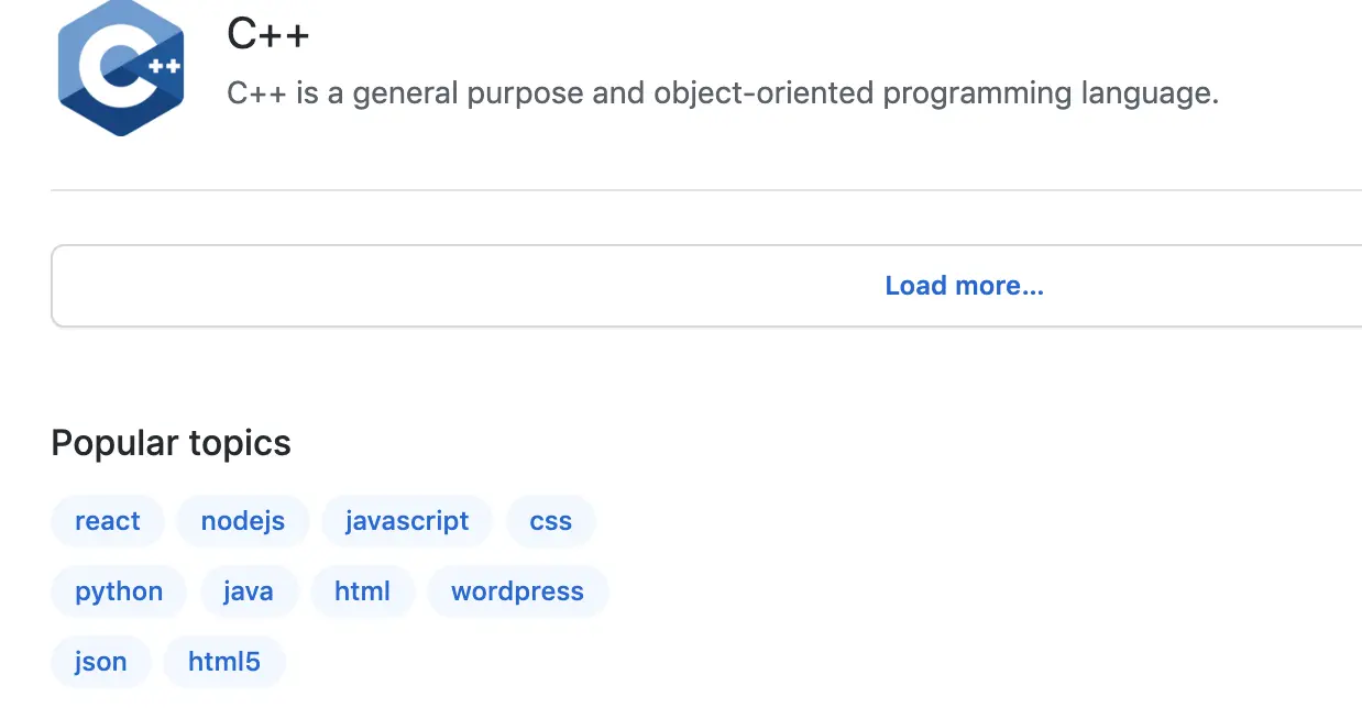 不过,主题这块有个缺点,就是它的排序是按照首字母从 A 到 Z 的排列,这就导致如果我想看 Java 的话,就需要 load more 再 load more,再 load more,嗯,还是看不到。