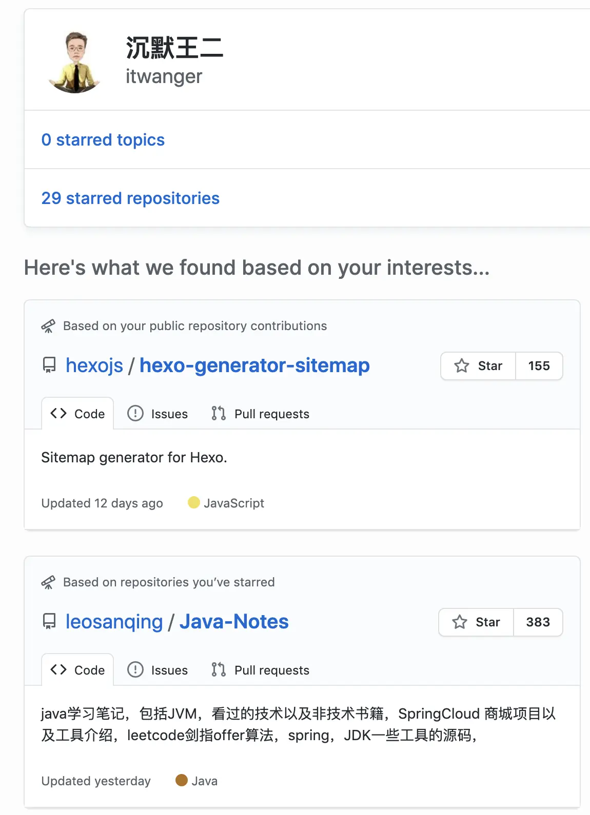 我不知道这个探索算法是怎么算的,感觉给我推荐的项目还不够优秀,可能是我自己的 GitHub 还不够优秀吧。