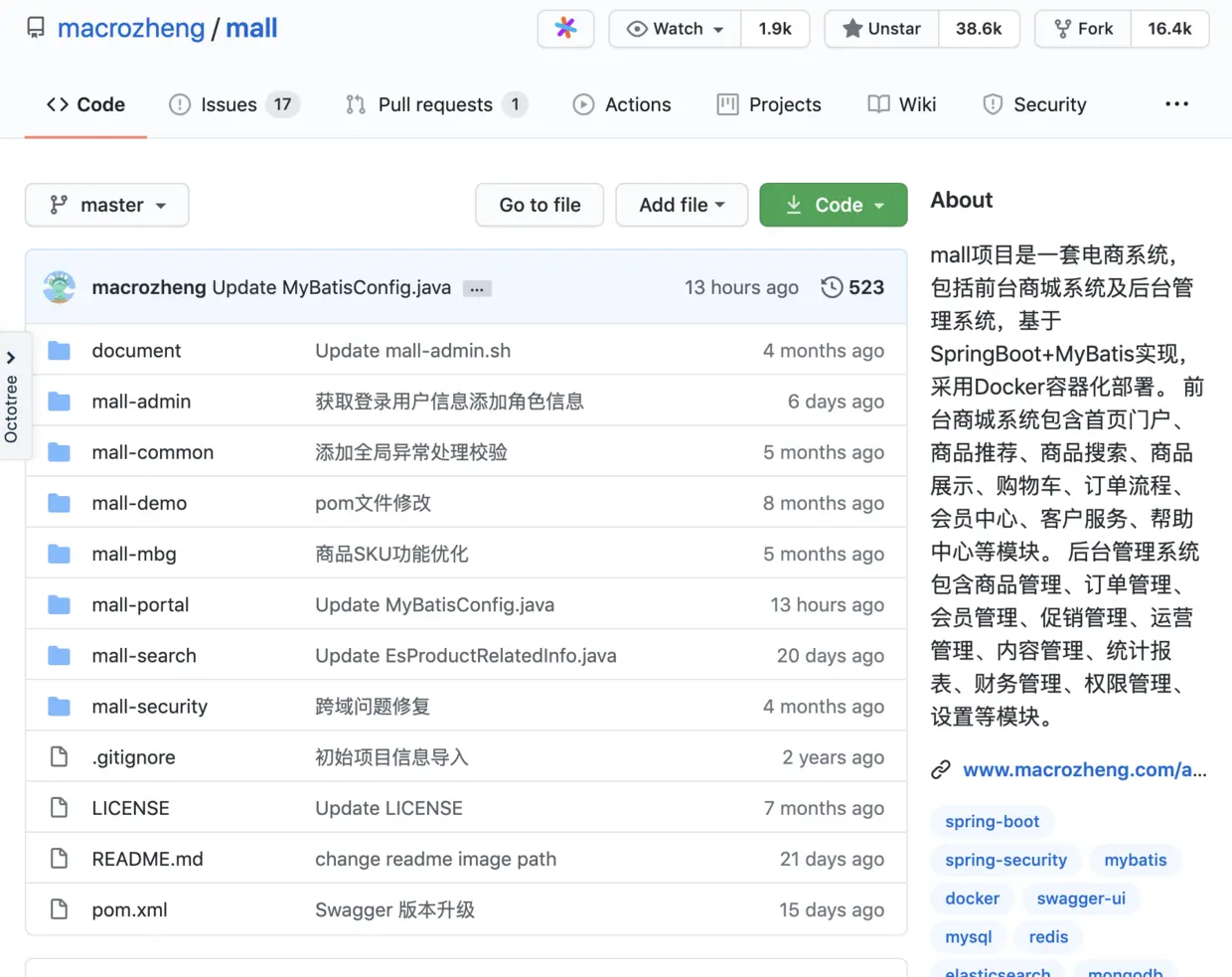 第二个,电商系统(mall),我的好朋友 macrozheng 的。
