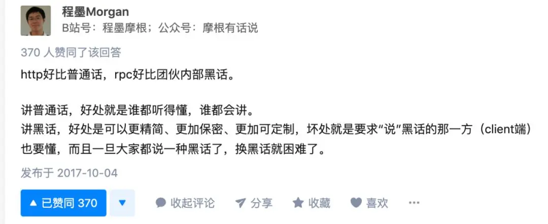 http 和 rpc 是两个很容易混淆的概念,最开始接触 rpc 的时候,我就在想有 http 了为什么还要用 rpc? 在知乎上看到了这个很有趣的问题: