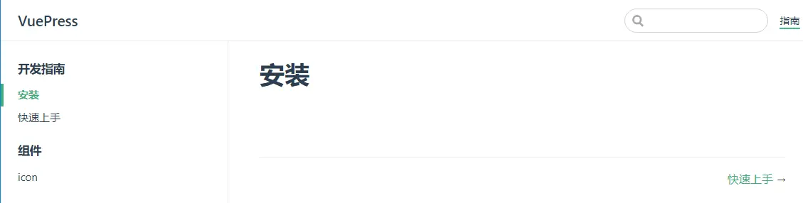 }对于上述的配置,运行yarn docs:dev,你应该能看到一个页面,它包含一个页头,里面包含一个标题和一个搜索框。