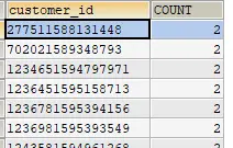 SELECT customer_id, COUNT(*) AS count FROM trade WHERE turn ="toSaveTrade" AND err_type!=1 GROUP BY customer_id HAVING count>1 ORDER BY count 从trade表中筛选customer_id重复字段,并且turn是"toSaveTrade" err_type!=1 根据customer_id来分组,并且统计的customer_id集合count次数要大于1,然后根据count排序一次