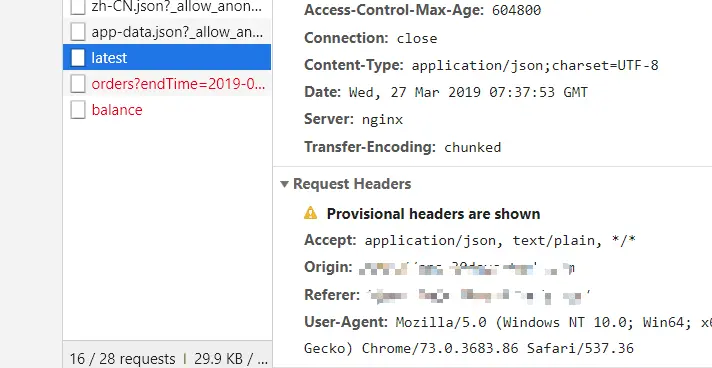 根因:当在进行跨域请求的时候,跨域请求的话浏览器HTTP请求会自动发出一个预检请求,即OPTIONS请求,访问[服务器]是否允许该请求,返回允许该域名进行请求的相关信息后会再发出GET或者POST请求,[服务器]如果没有没有针对OPTIONS请求进行单独处理,会出现 provisional headers are shown,阻止了请求的正常加载。