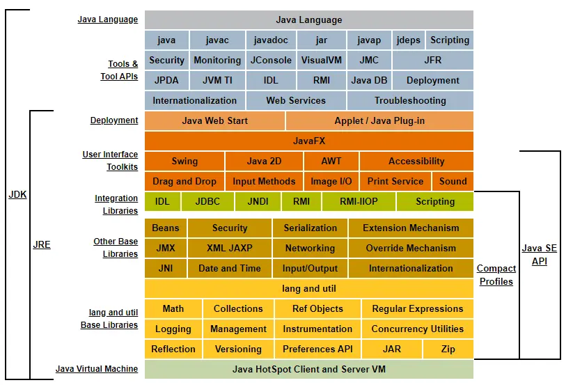 JDK 8 is a superset of JRE 8, and contains everything that is in JRE 8, plus tools such as the compilers and debuggers necessary for developing applets and applications. JRE 8 provides the libraries, the Java Virtual Machine (JVM), and other components to run applets and applications written in the Java programming language. Note that the JRE includes components not required by the Java SE specification, including both standard and non-standard Java components.