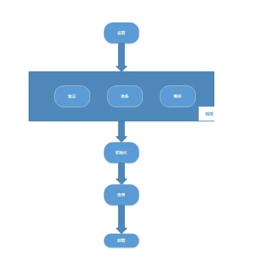 类从被加载到虚拟机内存中开始,到卸载出内存为止,它的整个生命周期包括:加载、验证、准备、解析、初始化、使用和卸载七个阶段。它们的顺序如下图所示: