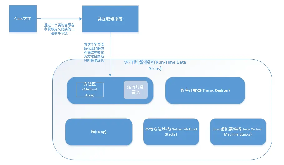Java虚拟机定义了在程序执行期间使用的各种运行时数据区域。 其中一些数据区域是在Java虚拟机启动时创建的,仅在Java虚拟机退出时才被销毁。 其他数据区域是每个线程的。 创建线程时创建每个线程的数据区域,并在线程退出时销毁每个数据区域。