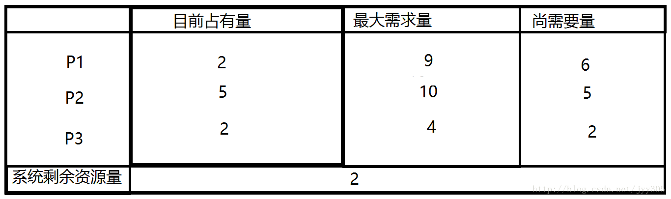 如果P1提出再申请一个资源的要求,系统从剩余的资源中分配一个给进程P1,此时系统剩余2个资源,新的状态图如下:那么是否仍是安全序列呢那我们来分析一下