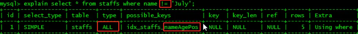 - mysql在使用不等于(!= 或 <>)时无法使用索引