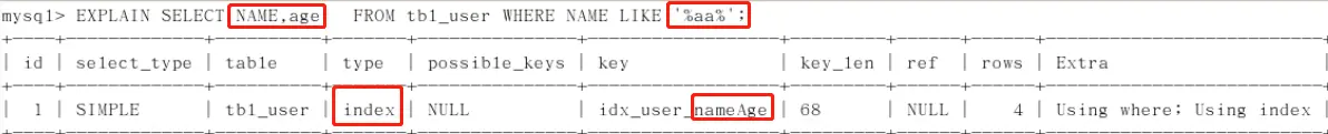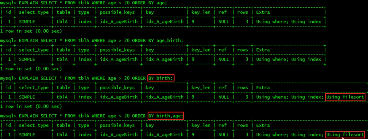 2、状态最好是using index,让mysql通过扫描索引本身完成排序