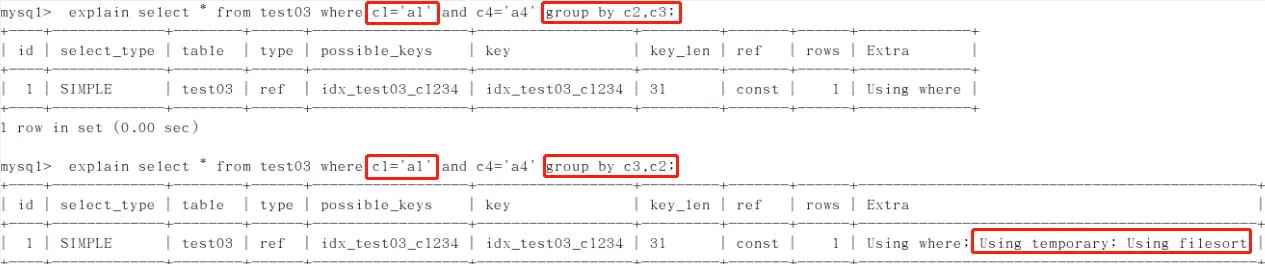 适用order by原则,实质先排序后分组,遵守索引建的最佳左前缀,使用不当会产生临时表