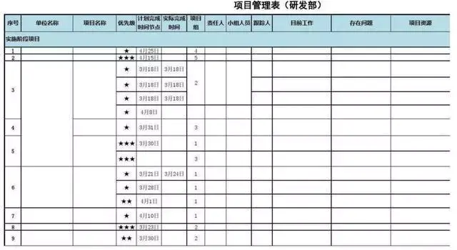 用于跟踪项目进程时十分有效。它不包含项目持续时间和任务关系等细节,但是更注重于项目状态和完成的过程。项目状态表的极佳功能是,它也包含了任务的负责人,如此一来,项目负责人可以更好地评估员工的业绩,知晓问题发生时该由谁负责,通常使用Excel、Visio/亿图来制作。