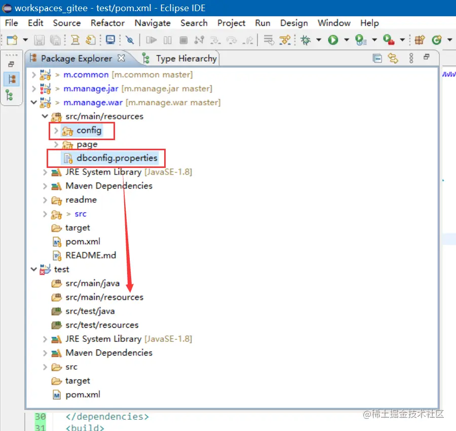 将m.manage.war项目的config文件夹和dbconfig.properties拷贝到新建项目的对应目录下。