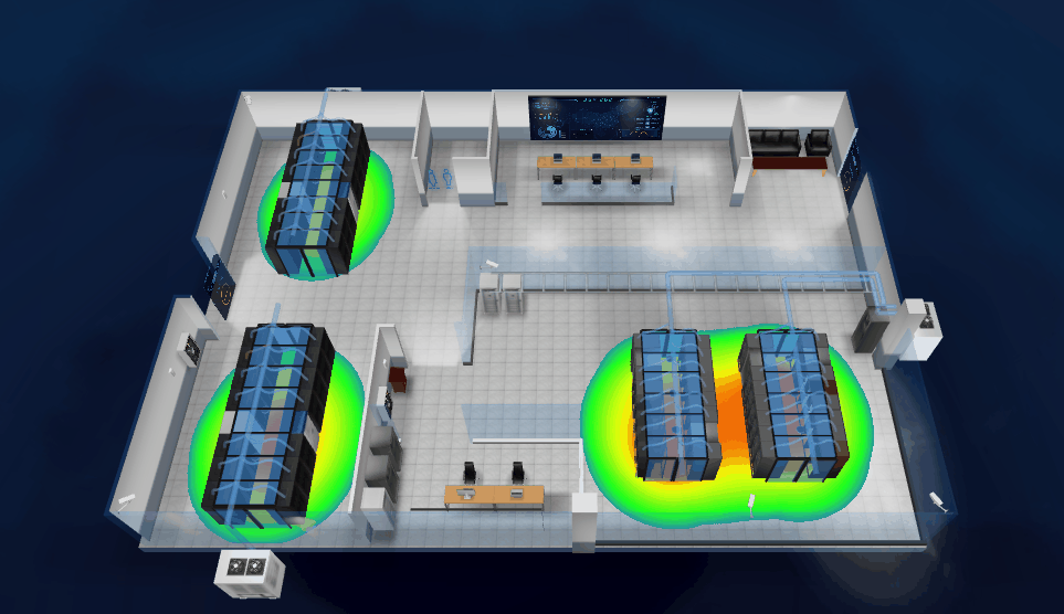 其用处可真的不小,主要应用于监控范围内的热点变化,热点可以代表许多状态,例如温度、密度等等,都可以作为划分的界限,根据表达情况的不同,热力图又可以应用到许多的场景中。地图热力图和业务数据分析的热力图最为常用,通过这种形式也可以很直观地表达。而现如今科技的迅速的发展中,物联网与互联网相互提升的时代中,迈向了工业4.0的新热潮,出现了工业互联网、5G 等等飞速发展的产物,在众多技术的支持下,机房监控的环境安全极为重要,喜冷怕热的设备,通过温度云图可以有效地检测到机房的运行状态。