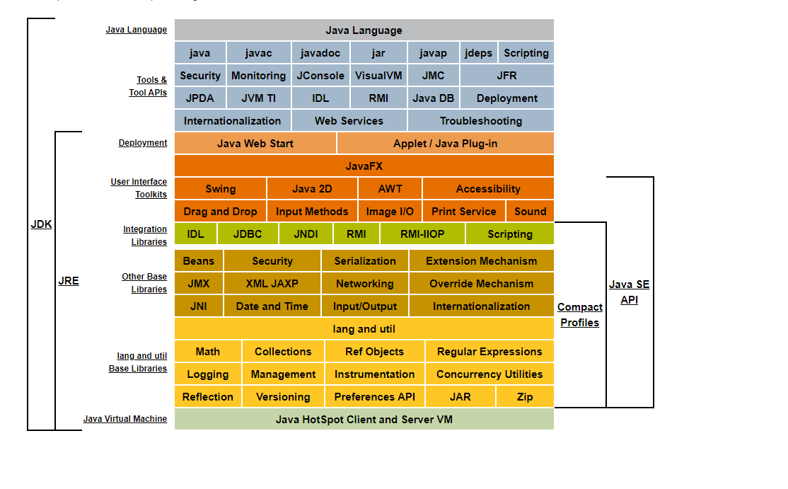 1,2,4三部分就是我们所说的JDK,下图展示了Java技术体系所包含的内容:
