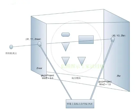 重点是将鼠标坐标转化成设备坐标,从而影响三维空间中发射射线方向的问题。