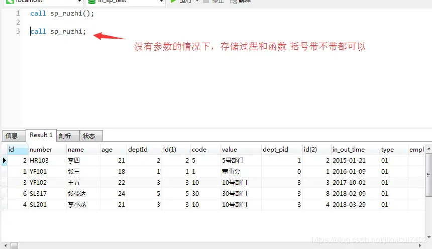 之前我并没有注意到存储过程可以返回结果集,如这样。存储函数只能返回一条记录(一个参数)。