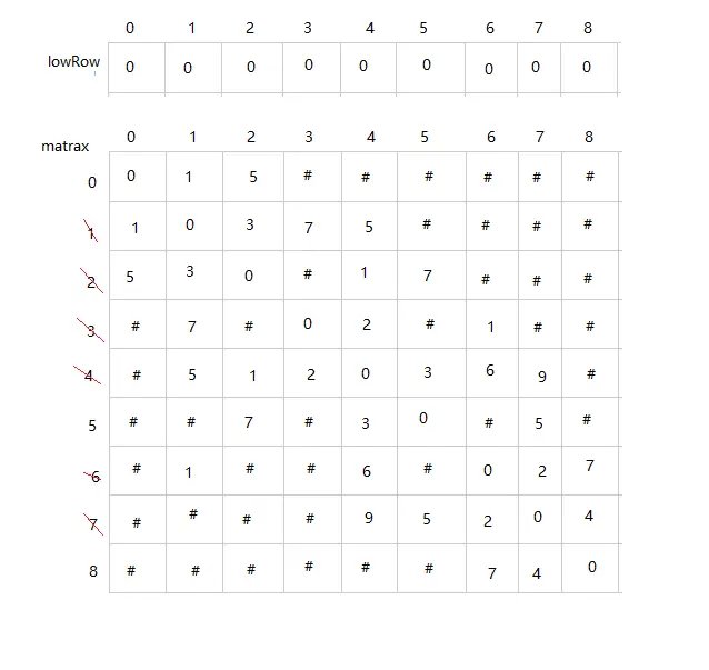 // 从第一个节点开始,把第一个节点的所有的路径拷贝到lowRow中